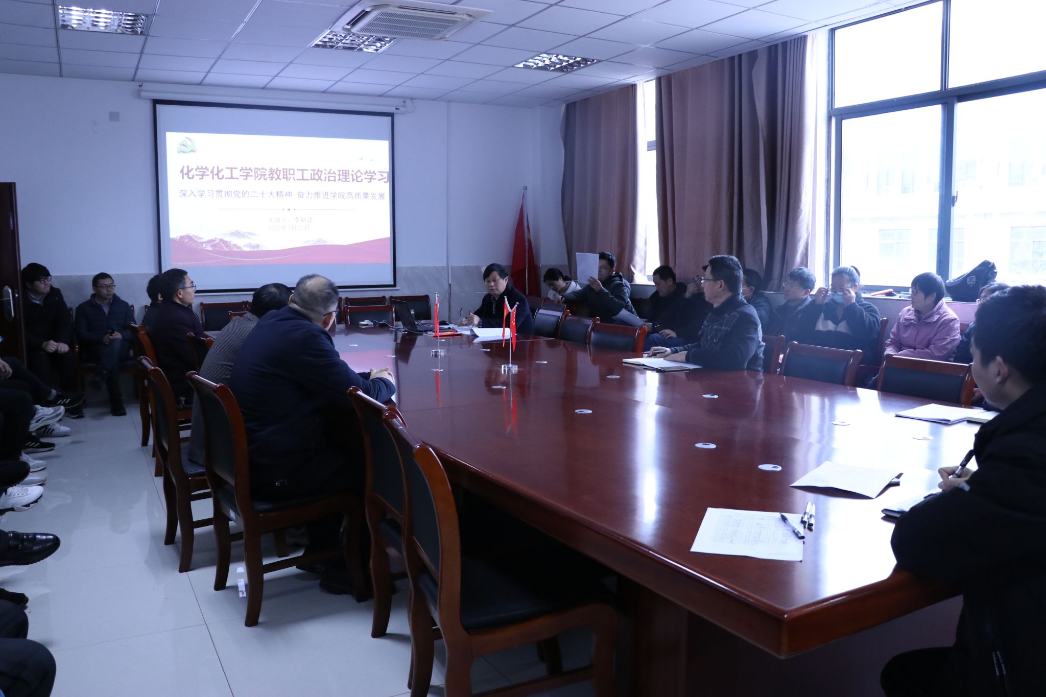 李新建结合公司实际,强调全体教师员工要切实把思想和行动统一到党的二十大精神上来,坚持“两个确立”,做到“两个维护”,坚定不移贯彻落实全省持续深化“一改两为”大会精神的要求,努力做到改作风、办实事,补短板、强弱项,固底板、扬优势,发挥好公司雄厚的团队队伍优势,发扬好优良的教风学风传统,补齐公司在学科专业建设、课程建设、博士点立项建设、产业公司建设等方面的短板,以实实在在的成绩奋力推进公司高质量发展。(撰稿、摄影:王玲 审核:鲍青燕)