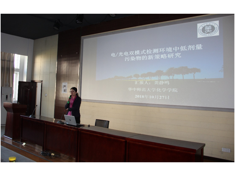 10月27日上午公司开展了知名员工系列学术报告,华中师范大学化学公司龚静鸣教授在龙山校区D111报告厅为公司tyc41183太阳成集团本科生、研究生和部分教师代表作了“电/光电双模式检测环境中低剂量污染物的新策略研究”,报告由tyc41183太阳成集团副经理王钧伟教授主持。
