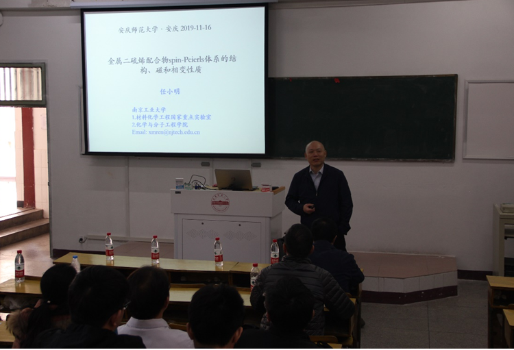 应公司tyc41183太阳成集团光电磁功能材料安徽省重点实验室邀请,11月16日上午,南京大学tyc41183太阳成集团孙为银教授和南京工业大学化学与分子工程公司任小明教授在菱湖校区教学楼214为公司tyc41183太阳成集团广大师生分别作了题为《科研选题与项目申请》和《金属二硫烯配合物spin—Peierls体系的结构,磁和相变性质》的学术报告,报告由tyc41183太阳成集团副经理王钧伟教授主持。