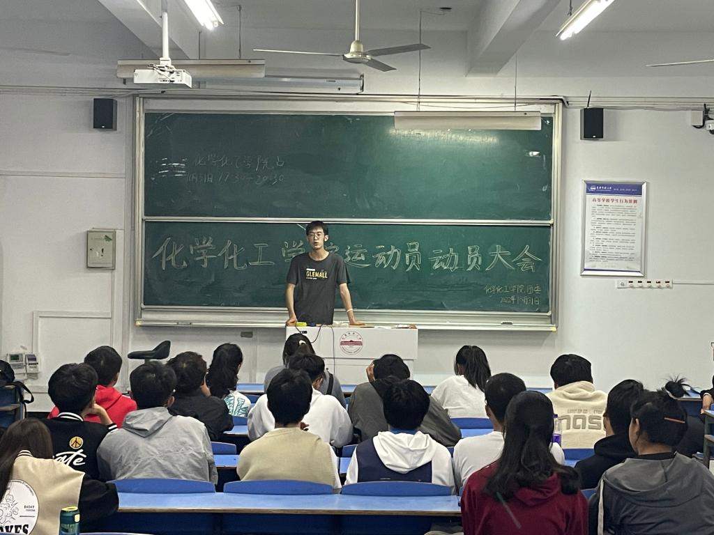 10月31日傍晚,“化学化工,谁与争锋”的口号响彻文溯楼,2022年校秋季田径运动会赛前动员大会在此召开。公司全体运动员、团委员工会主要员工干部和团委负责老师出席活动,员工会执行主席周琛琛主持大会。