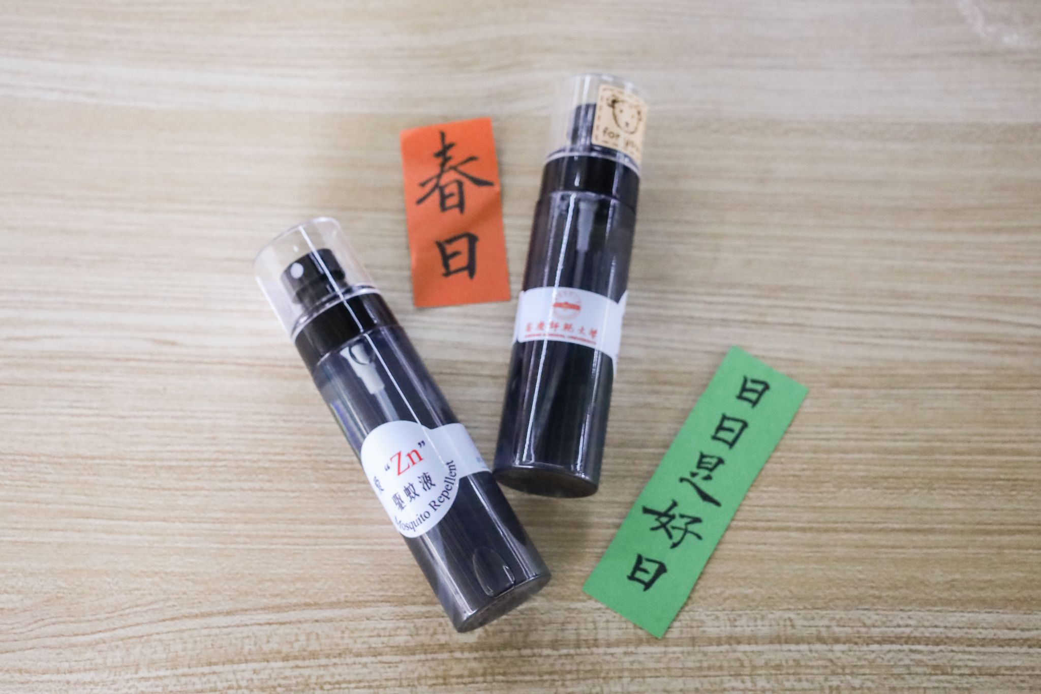 路过摊位时,经济与管理公司教师洪春燕上前询问产品的基本信息后,购买了艾草和薄荷两种香型的驱蚊液,并挑选了写有“坚定”“诸事宜”字样的书法卡片。“驱蚊液是夏天必备的生活用品,我购买产品也能支持员工的公益活动,一举两得。”洪春燕表示,精致的包装与书法卡片给手工作品们“变装”,更能获得师生的青睐。
