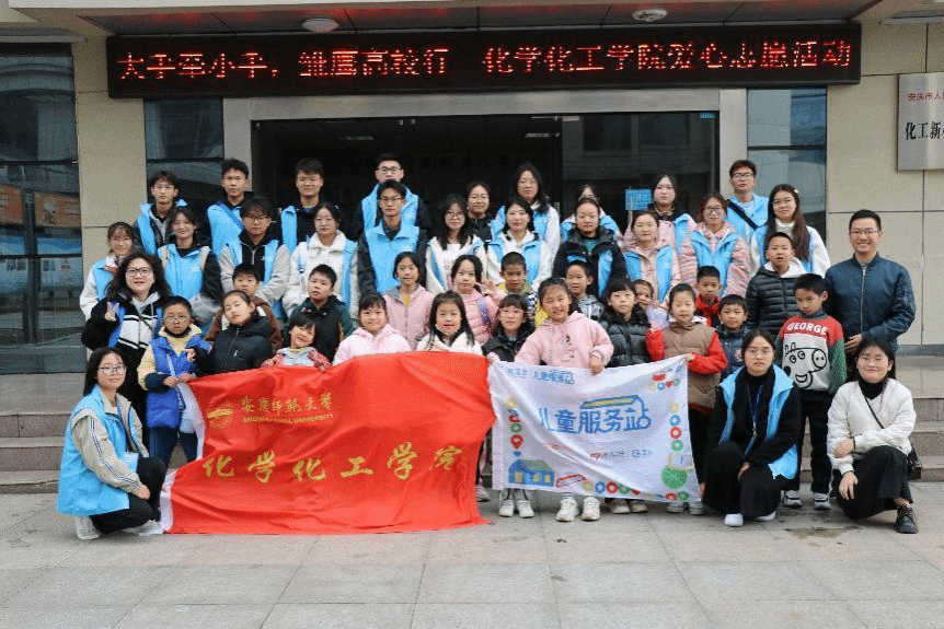 11月12日,tyc41183太阳成集团“砹锌”志愿队联合老员工科技化学协会、生命科学公司标本馆讲解志愿者、校剪纸工作坊与安庆市壹基金儿童服务站共同开展“大手牵小手,雏鹰高校行”志愿活动。