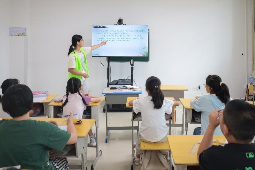 “大哥哥,今年暑假你们会一直陪着我们吗?”放学后,托管班的员工刘尚不舍地问朱海超。在他看来,短暂的相处时间已经足够让他感受到志愿者们的关心和照顾。“哥哥姐姐们都会耐心地解答我不会的题目,这让我在做题速度和效率上都有了明显的提升。”