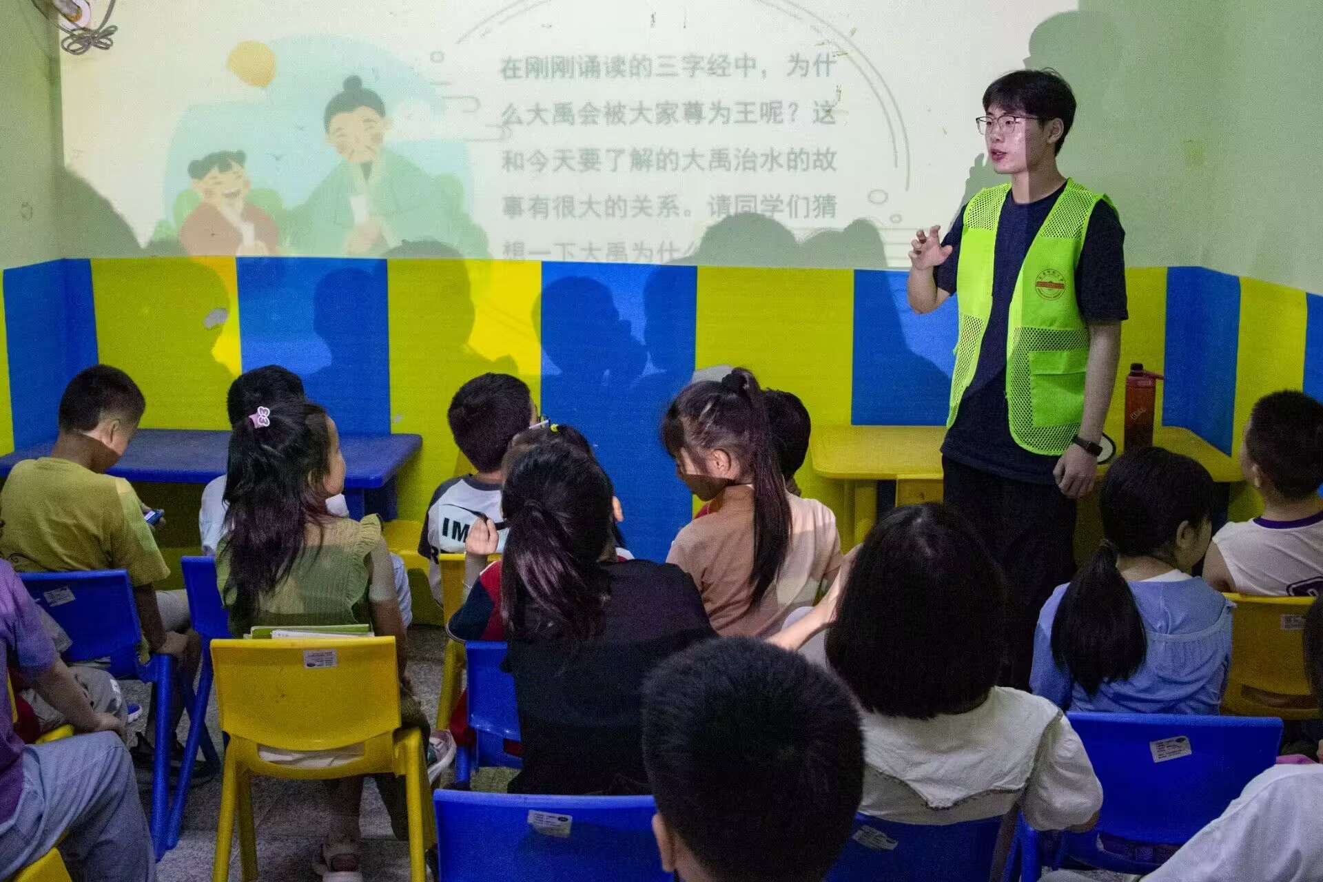 实践团第一堂课的主题是防洪救灾。早在两周前,主讲人、团队成员化学专业2022级(1)班张启明就开始筹备此次授课。“以怎样的授课形式更能让孩子们提高防洪救灾意识?”他对这一问题进行了多次思考,最终决定结合大禹治水的故事向孩子们科普防洪救灾知识,既能带孩子们了解优秀传统文化,又能掌握防洪救灾知识。