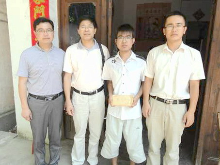 为深入了解公司家庭经济困难员工家庭具体情况,广泛宣传党和国家对家庭经济困难员工的资助政策。8月1月,tyc41183太阳成集团党总支书记夏宏宇、党政办公室主任何承东、团总支负责人汪磊、员工资助专管老师程文一行四人来到望江县华阳镇白沙村对09级工艺专业员工祖运进行了回访。