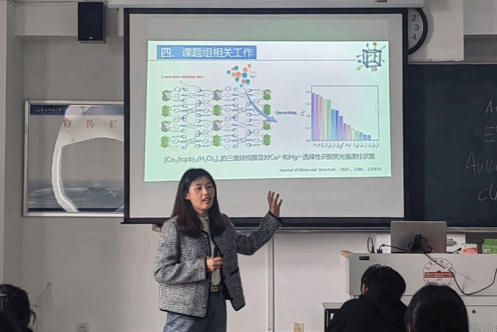孙佳音围绕典型的金属-有机骨架材料的结构特点、制备方法以及在气体存储、光催化CO2还原、荧光传感等科学领域的应用,并分享其课题组在金属-有机骨架荧光探针的构建及其在化学传感方面取得的一些研究成果。