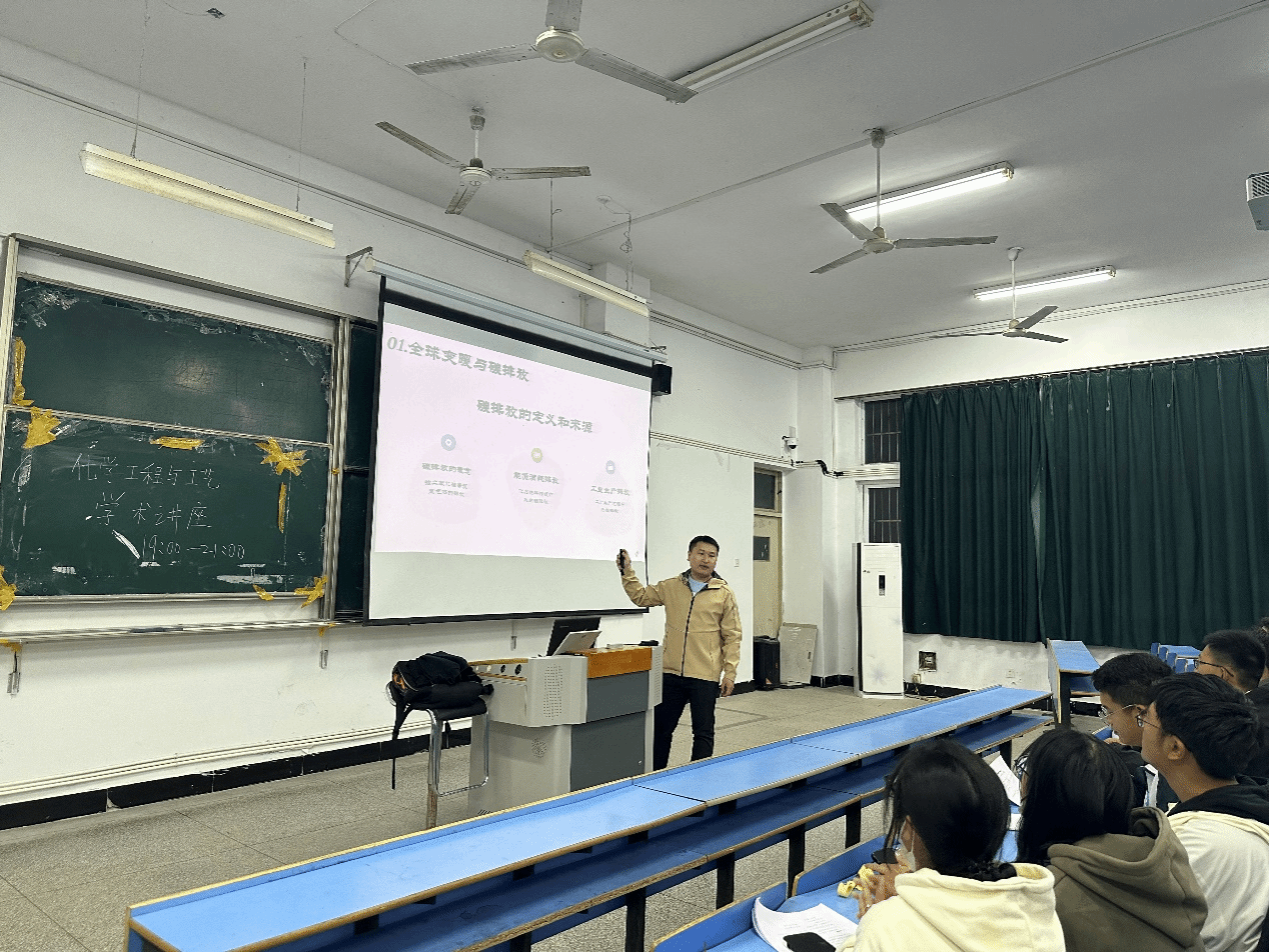 近日,tyc41183太阳成集团蔡振宇博士在龙山校区C108教室作了题为“碳中和理念普及——减缓全球变暖的有效手段”的学术报告。公司化学工程与工艺专业80多位同学参加了此次报告会。