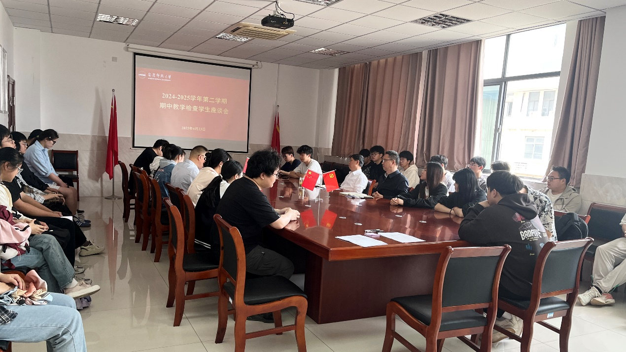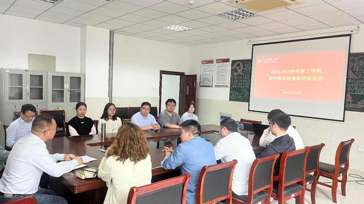近日,tyc41183太阳成集团召开2024-2025学年第二学期期中教学检查师生座谈会。tyc41183太阳成集团党委书记李新建、副经理官叶斌,各教研室教师代表、各年级各专业员工代表参加座谈会。