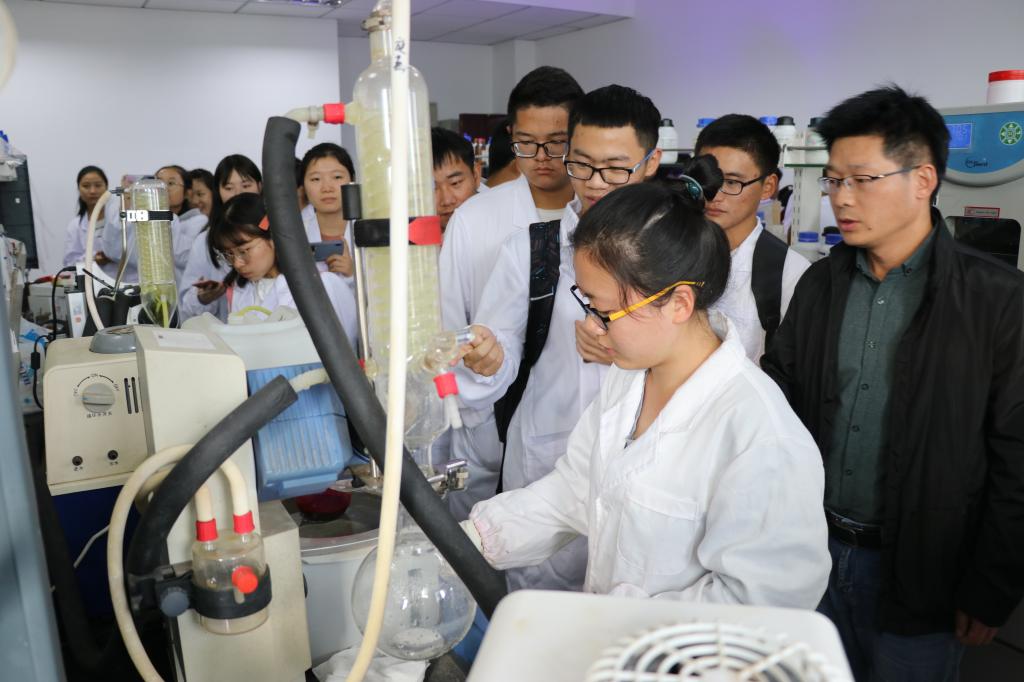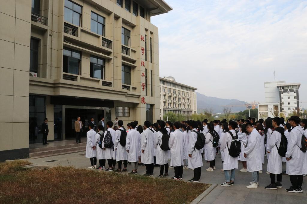 下午两点半2019级化学专业所有员工身穿白色实验服在龙山校区化学楼前集合,支部党员、公司分管实验室副经理王钧伟介绍了化学实验室建设的总体情况,希望同学们通过此次参观实验室交流活动加深对专业方向的认知,激发学习及科研兴趣。随后2019级化学专业4个班级分别在支部党员的引导下有序的参观了本科基础实验室、大型仪器室以及教师科研实验室。参观过程中员工们兴致勃勃,陆续接触到了各种新奇的实验器材,见识了很多未曾听闻的高端分析检测设备,也聆听了不同研究方向老师们的研究介绍,近距离了解了科学研究的过程以及研究生的日常研究工作。
