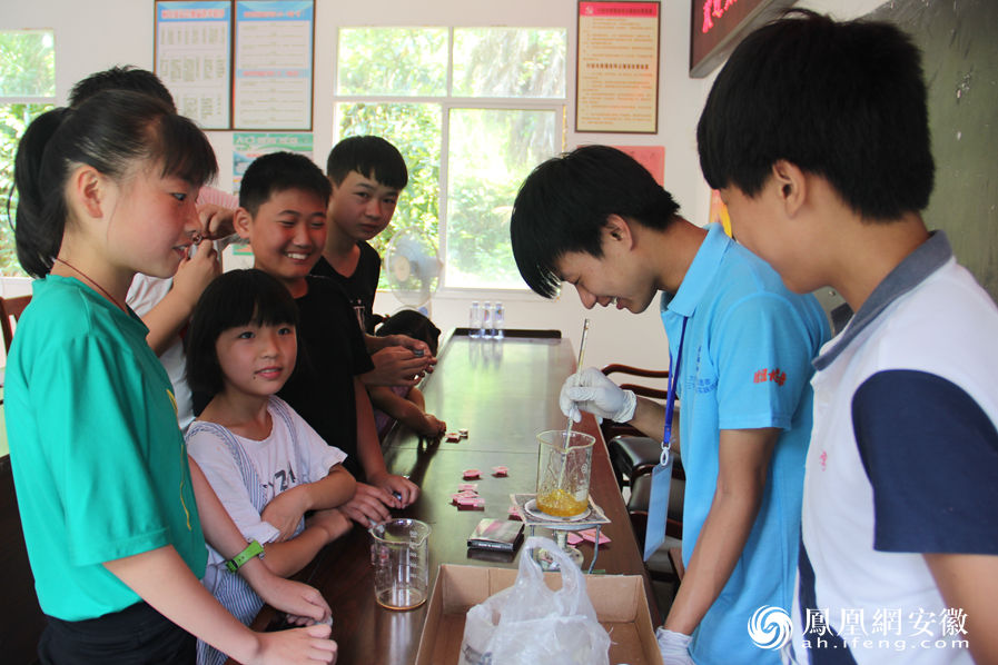 据了解,这是tyc41183太阳成集团在“科技扶贫,教育先行”扶贫模式中走进偏远山区太湖西冲开展的微科研探究活动内容之一。在保证安全有序的前提下,激发孩子们对化学的兴趣,普及生活中的化学知识。