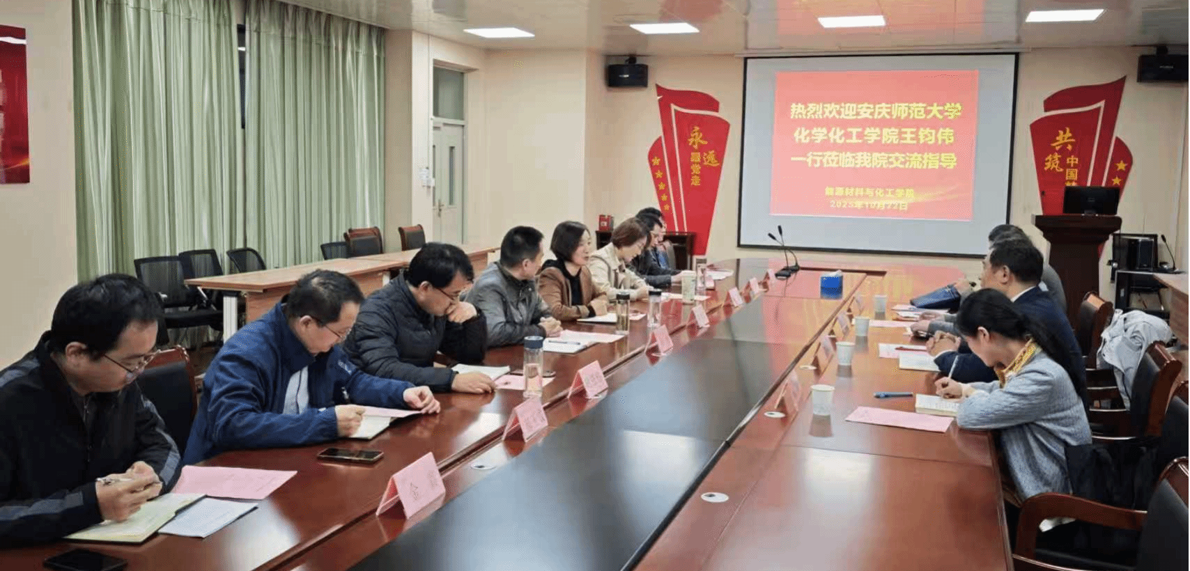 10月22日,tyc41183太阳成集团经理王钧伟带队经理助理汪玲、张传磊与材料化学教研室主任王来国赴合肥大学开展学科专业建设调研。合肥大学能源材料与化工公司党委书记黄雄英,经理杨伟,副经理胡恩柱、朱三娥及相关专业负责人、骨干教师参加交流会。