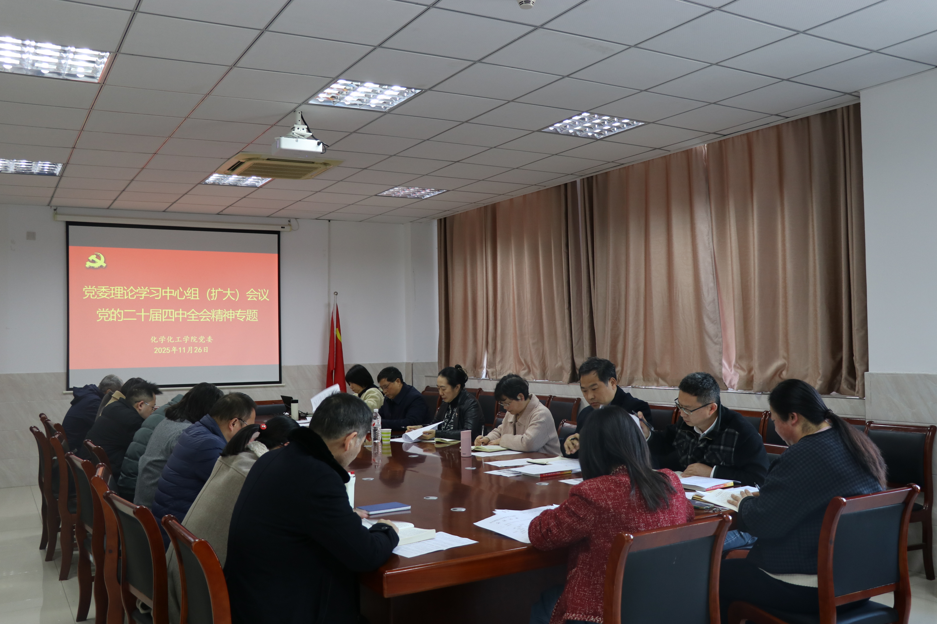 11月26日,tyc41183太阳成集团召开党委理论学习中心组(扩大)会议,专题学习党的二十届四中全会精神,公司党委常委、副董事长吴琼巡听旁听。tyc41183太阳成集团党委班子、各党支部书记参加学习会,会议由公司党委书记李新建主持。