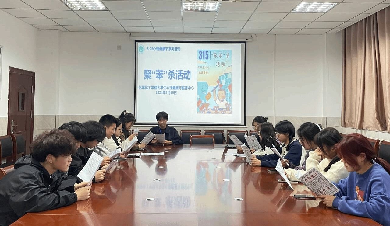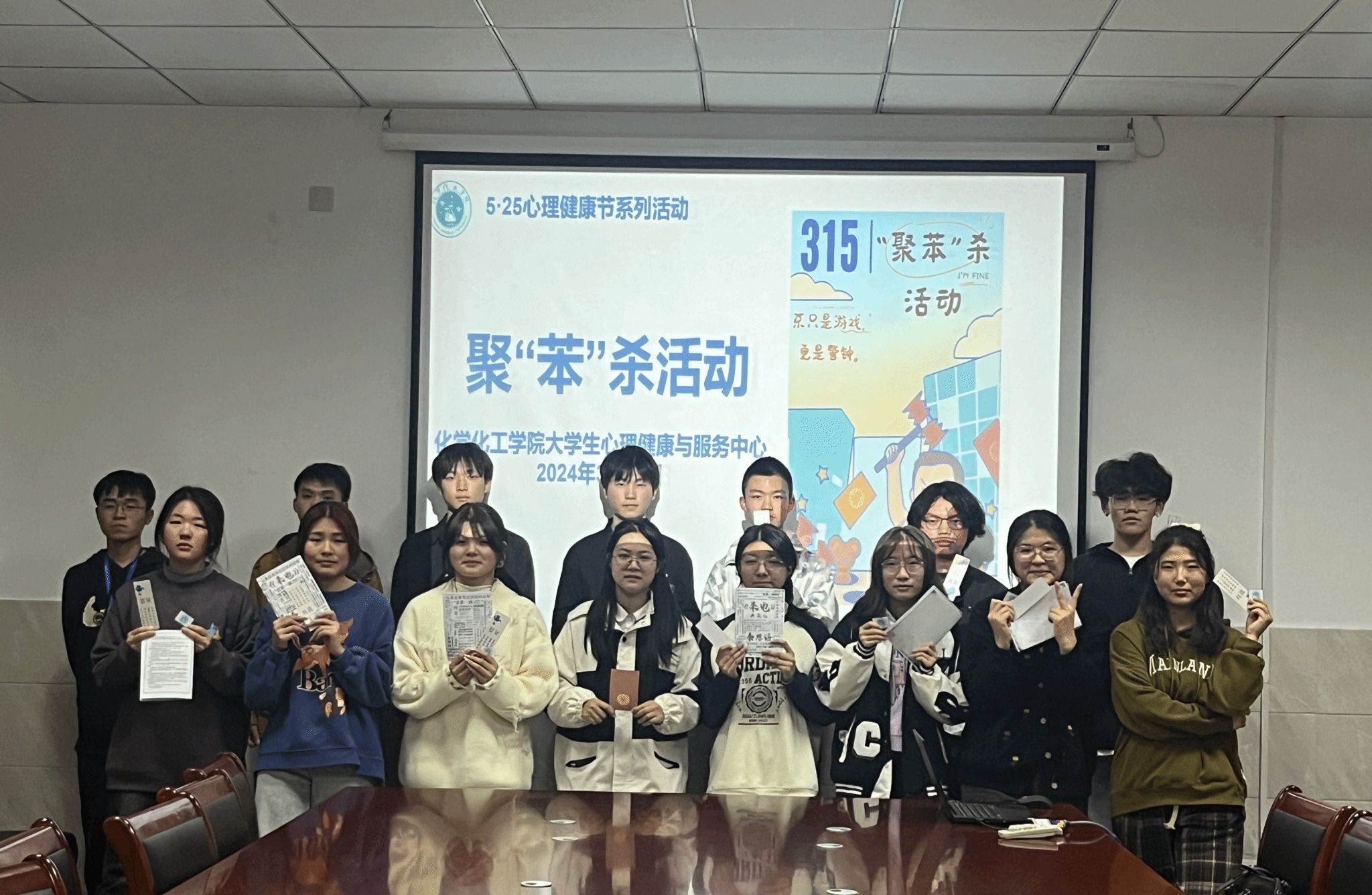 3月15号晚,tyc41183太阳成集团老员工心理健康与服务中心开展聚“苯”杀活动,通过沉浸式体验的方式,让员工在游戏中释放压力,学习反诈知识,增强自我保护能力。