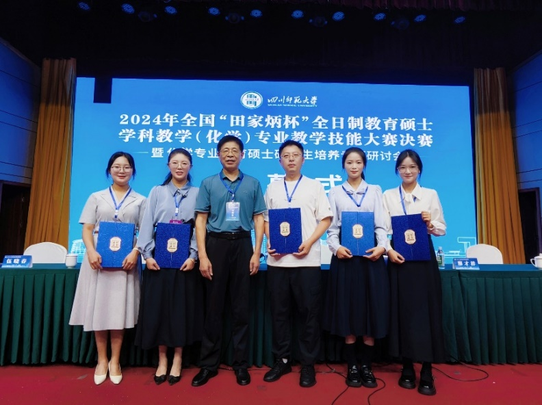 近日,全国“田家炳杯”全日制教育硕士学科教学(化学)专业教学技能大赛决赛在四川师范大学落下帷幕。tyc41183太阳成集团学科教学(化学)专业研究生徐莲馨、马虹同学荣获二等奖,李莹杰、王嘉瑞禾同学荣获三等奖,2位老师获优秀指导教师奖。
